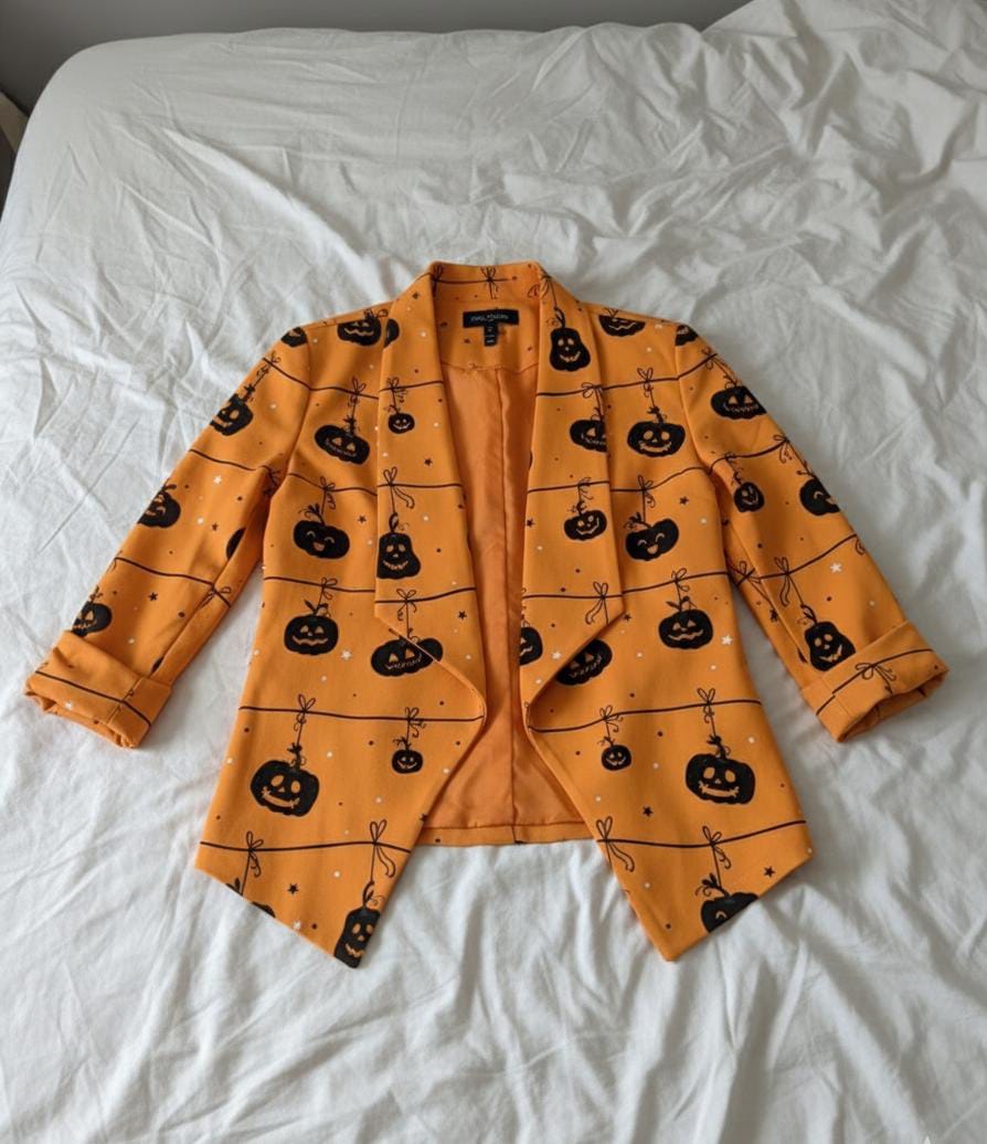 Crafted with high-quality materials, it offers a comfortable fit and smooth finish for all-day wear. The bold prints and eye-catching colors make it a statement piece, ideal for those who want to combine festive fun with stylish sophistication. Dress it up or layer it for casual Halloween outings — this blazer brings personality, comfort, and seasonal charm to your wardrobe.