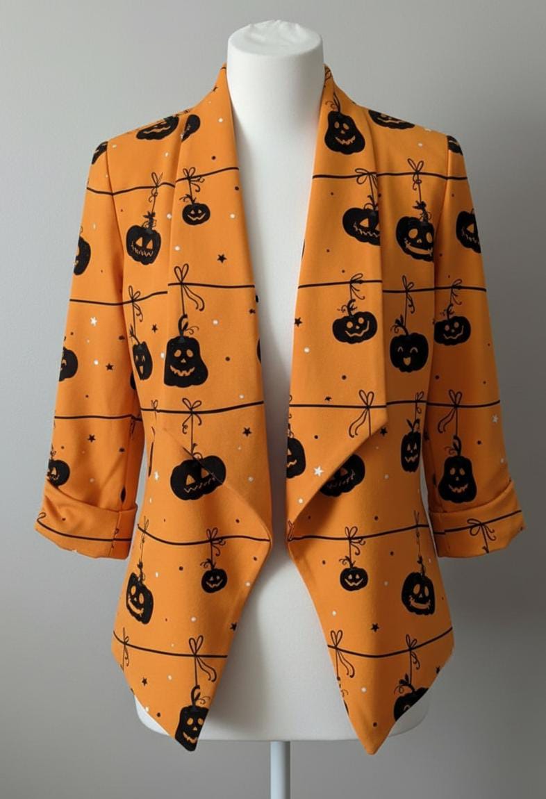 Style: Halloween Pumpkin Printed Blazer